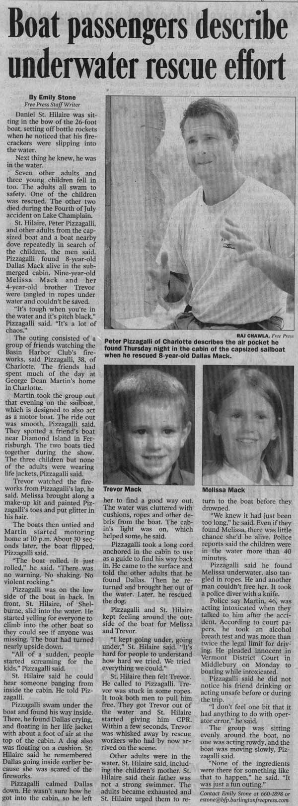 The boat capsized about 10 p.m. on Lake Champlain in Ferrisburgh. Nine-year-old Melissa Mack and her 4-year-old brother, Trevor, drowned. The accident left the community wondering what caused a boat on calm waters to suddenly capsize.