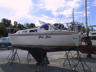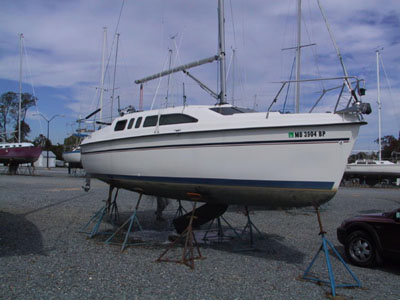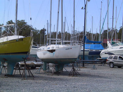 We were fortunate to have Sea Luff (the Hunter 26 formerly Charis) pulled prior to the storm.