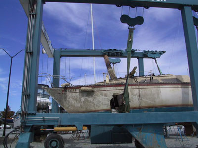 There was a 34 foot sailboat in the cradle with a 20 foot piling stuck
