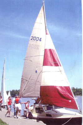 "About Time" was finally launched in June of 2004. It's hard to get pictures of your own boat. These were taken at an open house at the Fanshawe Yacht Club. |