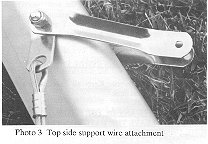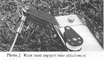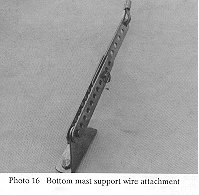 Attach a wire adjuster channel to the bottom end of the top, middle and bottom mast support wires, and to the Photo 15 Wire adjuster channel attachments rear mast support wire. (Photo 14)