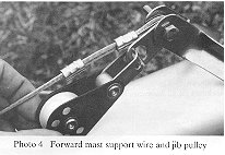 Attach a turnbuckle to the forward mast support wire as shown in Photo 17. Adjust the turnbuckle so that it is 1/3 closed.
