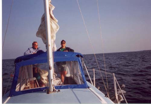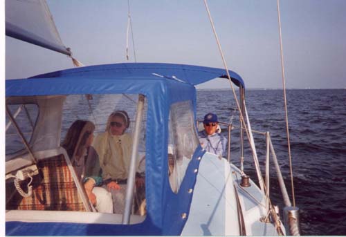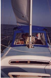#4 my dad at the helm. Note the bimini zipped to the pop top enclosure