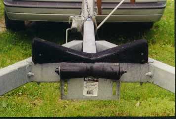 This shows the front of the trailer with a V block and a roller to help the bow into the V.