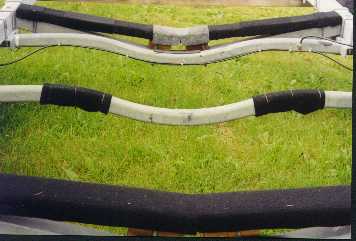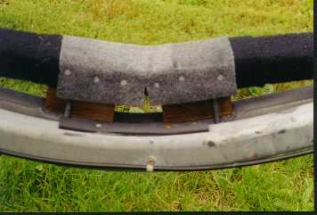 This is looking aft. The axle has been padded so that the boat will not rub on it when the boat is being loaded. The rear cross member has shimes to support the boat across the hull