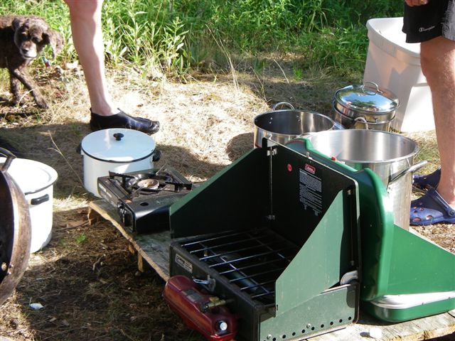 everyone headed for shore on the island. Linda had 4 stoves going at one