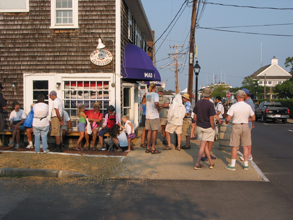 At 8:30 am it was time to sail again, we were off to Cleveland Ledge to meet up with the rest of the fleet from Wareham. This did not happen but we did get some good sailing in before we had to motor to make the tide at Woods Hole. Then the fun started it is only a short distance from the Hole to Tashmoo but what a ride. We pushed the Dolphin over to more than 40 degrees and kept her at hull speed for the trip. What a ride, this was sailing and fun. But with our quest for speed we noticed Time Enough had the perfect line to sail into Tashmoo that we did not. Inside Tashmoo we all got to practice our anchoring ability as it usually takes 2, 3 or more times to set in the weeds. But once the anchors were set the rafting started again the this time the call for ice cream was heard and at 4:pm we worked out how to get to the dock and off to Mad Martha's.