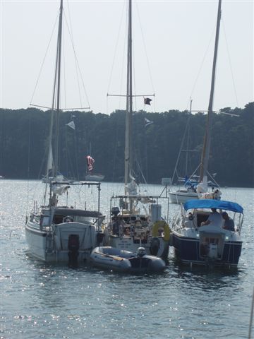 Our Rendezvous leader, Ed on Dolphin (center) rafted to Puddlehopper and Endurance