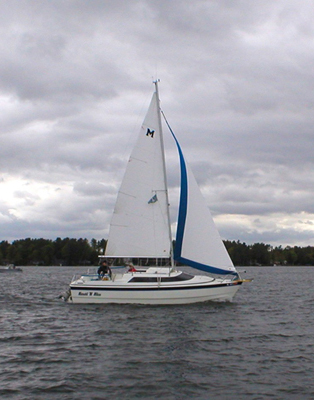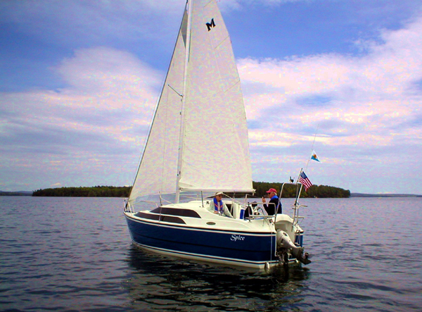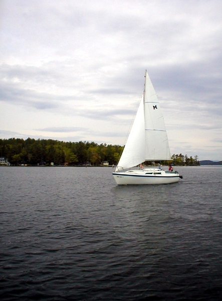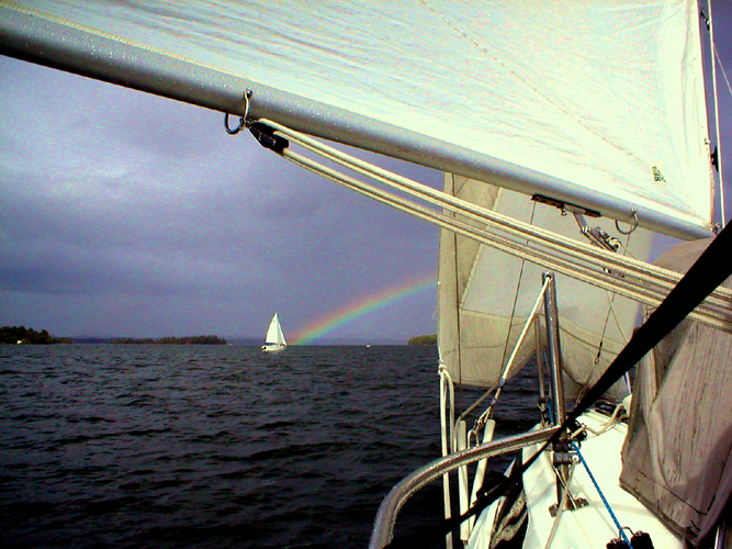 I chickened out on my first solo sail and sailed up with Al and Karen and back with Dan and Linda. The trip back had a first for a Winni rendezvous. We had a rain shower (definitely not a first ) and then a beautiful rainbow (that was a first).
