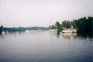 Boats were launched all weekend from Malletts Bay and Willsboro Bay. By Sunday evening the majority were at the first 'official' anchorage of the trip at Butterfly Bay on Valcour Island. A 2-day plan was made during the Monday morning captain's meeting to take advantage of the usual south wind for the trip to Deep Bay 15 miles north on the New York side and then over to Burton Island for Tuesday night.