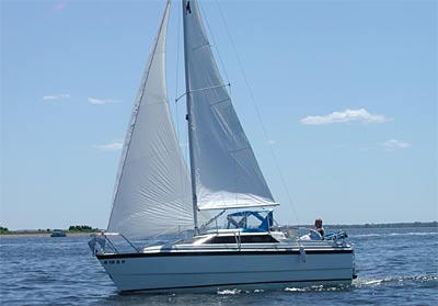 Arriving at Potter's Cove in the mid afternoon, we were impressed with the large number of boats tied to an even larger number of moorings. There, in one of the most shallow areas of the Cove were a number of NE-TS boats rafted. Only trailer sailors could get so close to shore. I bet many a power boater was watching, scratching their heads in wonder.